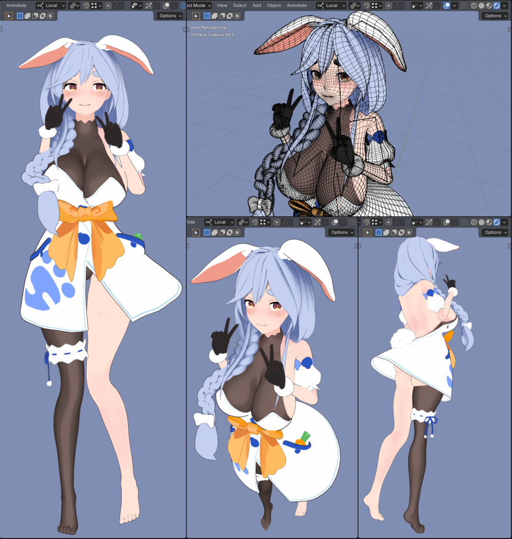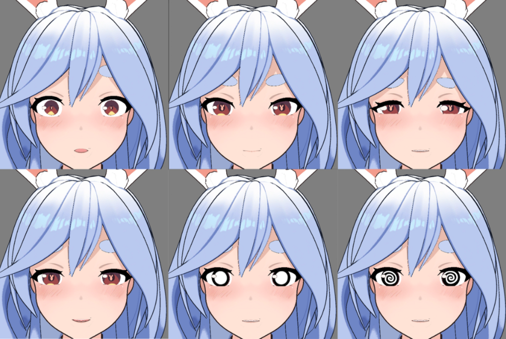- Setting BlendShapes to maximum values may cause overlapping of some expressions (e.g., mouth shapes A, I, U, E, O and blinking), leading to excessive deformation. The pekomama model sold has been optimized to prevent this issue.